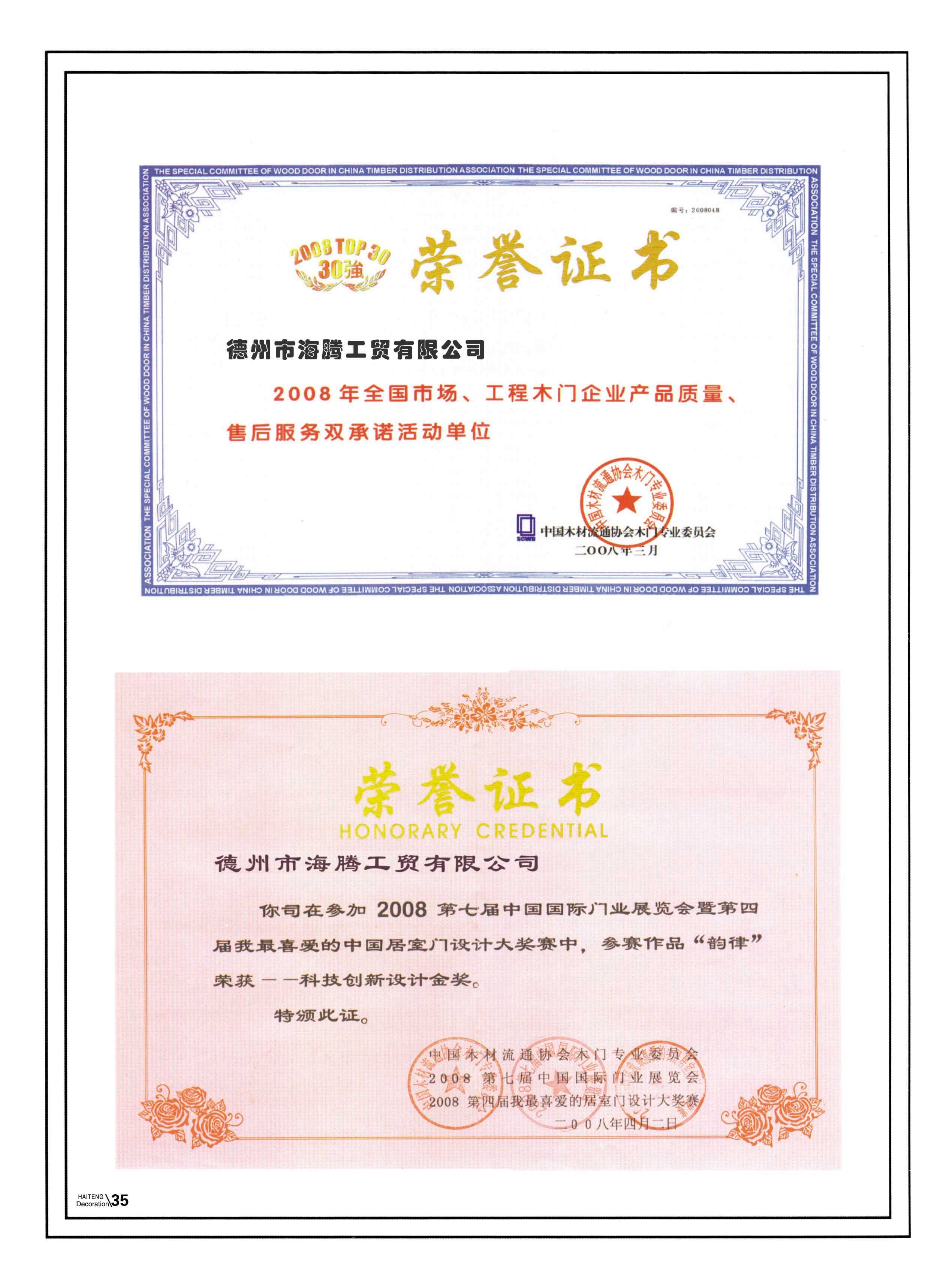 中國(guó)木材與木制品流通協(xié)會(huì)木門(mén)專(zhuān)業(yè)委員會(huì)副會(huì)長(zhǎng)單位,堅(jiān)持走"專(zhuān)精特新"發(fā)展之路。